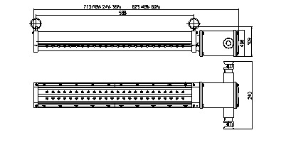 該巷道燈為固定使用型,采用隔爆兼本質(zhì)安全結(jié)構(gòu)。由接線電源隔爆腔和LED光源腔組成。接線電源隔爆腔內(nèi)的本安電路,將通過引入裝置的127V交流電,變換為穩(wěn)壓、恒流、經(jīng)安全柵雙重保護的本安電源供LED光源使用。LED光源腔,由高亮度LED發(fā)光二極管、鰓形散熱外殼體、下殼體、防靜電透明燈罩、端蓋等構(gòu)成。
